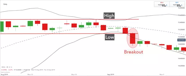 A consolidation phase suggests that the market is non-directional for the time being and now rangebound in nature. The narrow or narrowing Bollinger Bands will essentially move closer to the price and at some stage appear to be ‘Squeezing’ the price. It is at this stage that breakout traders might pay attention.